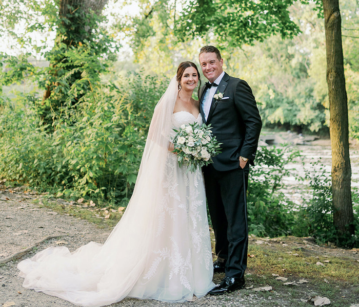 Beth and Todd exchanged their vows at a lovely Christ Church ceremony in Oak Brook, IL following a beautiful reception at the Westin in Lombard. Their florals were also primarily classic white, but with pops of purple at the ceremony, and elements of pink at the reception. With great food and wonderful music by Stitley Orchestra, this wedding was also incredible. And, we’re so glad both couples let us play a small part. See more of Beth and Todd’s wedding at Five Grain Events.