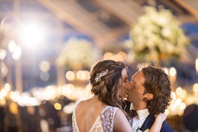 Jessica and Louis met as undergrads during orientation at Washington University in St. Louis. Later, they both went on to earn their master’s degrees from the University of Chicago Booth School of Business. Their wedding was originally planned for 2020, but it had to be rescheduled due to Covid. We think their gorgeous gathering at Adler Planetarium in August 2021 was definitely worth the wait. We loved working with this upbeat couple and with Michelle of MC Designs, who helped plan and style the whole event. The floral decorations included large elevated centerpieces in classic golden bowls, floating wreath centerpieces with hanging votives, and lots and lots of romantic candles in glass. There were roses galore, including Sarah, Vendela, Bridal Akito, and Playa Blanca varieties. Other floral selections included mini calla lilies, hypericum, Mokara orchids, blue thistle, ranunculus, dendrobium orchids, hydrangeas, lilies, godetia, waxflower, lisianthus, and stock, with eucalyptus, Italian ruscus, and Israeli ruscus, too. It was a modern Jewish ceremeony with a classic gold and white reception and a beautiful starry setting under glass. In keeping with the moonlight view, Jessica and Louis selected the song Dancing in the Moolight for their first dance, and we wish them many, many happy years of dancing in the moonlight together. Thank you Jessica and Louis for letting us play a part in your wonderful day, and congratulations on your upcoming first anniversary this August!