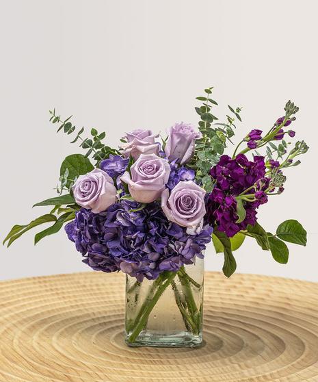 Send a stunning tribute of Aquarius energy right to their door today! Known for their vibrant spirit and affinity for networking, Aquarius benefits from the calming purple hues of our Amethyst Flower Arrangement. Celebrate the unique qualities of the Aquarius Water Bearer with this beautiful floral display for birthdays, anniversaries, or any time of year. Gemstones like Amethyst are not reserved for only people born at a certain time of the year. Anyone who possesses this flower arrangement will enjoy the soothing energy of Amethyst, but is most beneficial to those who are born between January 20th and February 19th due to their high-energy nature. Our Amethyst arrangement is ideal for bringing balance and mental clarity to anyone’s life! Same-day and Next-day local flower delivery is usually available.