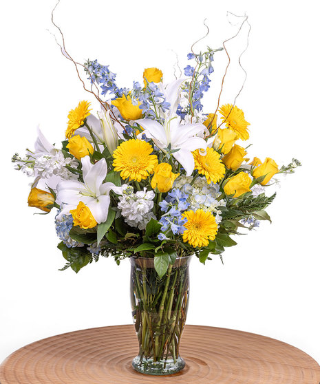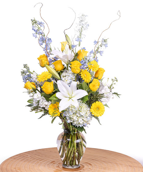 Send a breath of fresh air to someone who needs it! Our Bright Skies flower arrangement is a delightful choice for new baby, birthdays, anniversaries, and every springtime occasion. This bouquet is a stunning representation of a bright blue sky in spring, bringing the beauty of nature right to your or your recipient’s door. Embrace the joy and convenience of local flower delivery in your area today!
