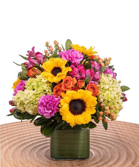 Beautiful arrangement consisting of hydrangea, carnations, alstroemeria, spray rose. Perfect for any occasion.