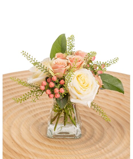 Focal Flowers Used: Roses, Spray Roses, Hypericum