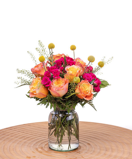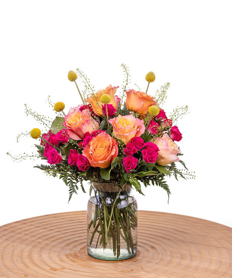 Who says roses are only for romantic occasions? This beautiful arrangement of hot pink roses is perfect for anyone who wants to enjoy the freshness and beauty of roses without all the flowery fuss. A great way to celebrate a birthday, anniversary, promotion, or any special occasion, The Jules is sure to bring a smile to everyone's face.